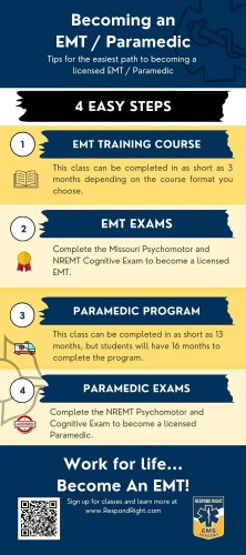 When you have successfully completed both portions of these exams, you will have NREMT Certification as an EMT and will need to apply to the State of Missouri for your license. Your Missouri license will allow you the right to practice as an EMS professional.